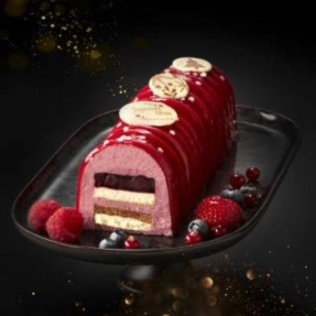 émulsifiant : lécithines, arôme naturel de vanille, cacao en poudre, cacao maigre en poudre, pâte de cacao), décor étoile en chocolat blanc (sucre, beurre de cacao, lait entier en poudre, émulsifiant : lécithines), purée de framboise 0,5%, purée de citron vert, humectant : glycérol, épaississant : pectines, concentré végétal (betterave rouge, pomme, potiron), correcteurs d'acidité : acide citrique, citrates de sodium.