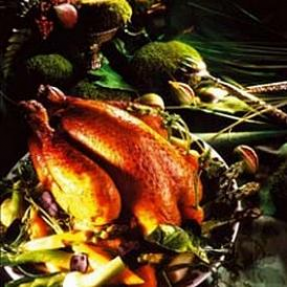 Chapon blanc souche à croissance lente classe A, éviscéré, sans cou, sans abat et bridé sans tarse. Prêt à cuire.