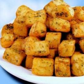 Cubes de pommes de terre avec un enrobage croustillant ail et fines herbes, préfrits à huile de tournesol.Coupe irrégulière pour plus de caractère.