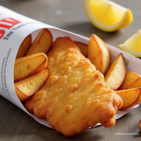 Filet de cabillaud MSC, sans arêtes, enrobé d’une pâte à beignet, préfrit, surgelé.