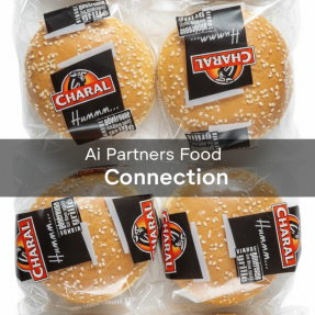 Préparation surgelée à base de préparation cuite de viande hachée de bœuf, de pain spécial, de fromage fondu et de sauce.