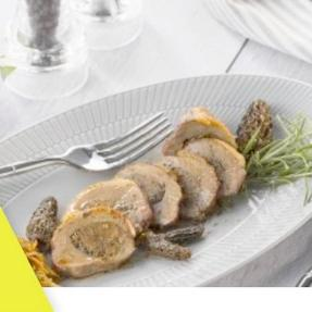 Filet de canette avec une farce aux morilles et Cognac Fine Champagne.